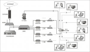每客房一台无线AP方式和一的图示类似,但AP点更多,每个房间针对性的做一个小功率AP。