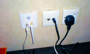 d. WLAN信号从面板上的小天线发送,CATV信号连接到电视机上,客人可以在房间内无线上网,并可以同时在电视机收看节目。
