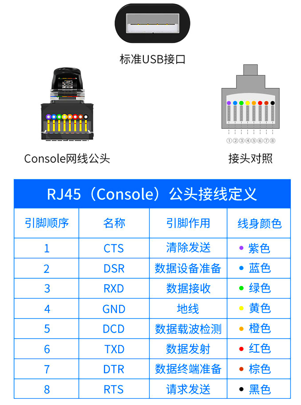 配置口电缆是一根8芯电缆,一端是压接的RJ-45插头,插入LSBM1WCM2A0业务板的Console口里;另一端则带有一个DB-9(孔)插头,可插入配置终端的9芯(针)串口插座。
