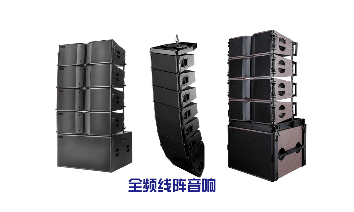 线阵列音箱常见的有双5寸两分频全频线阵列音箱、双8寸两分频全频线阵列音箱、双10寸两分频全频线阵列音箱、双12寸三分频线阵列音箱、有源线阵列音箱等。线阵列音箱广泛应用于宴会厅、学术报告厅,多功能厅,剧场、剧院、体育馆、大型会议室及流动演出上面。