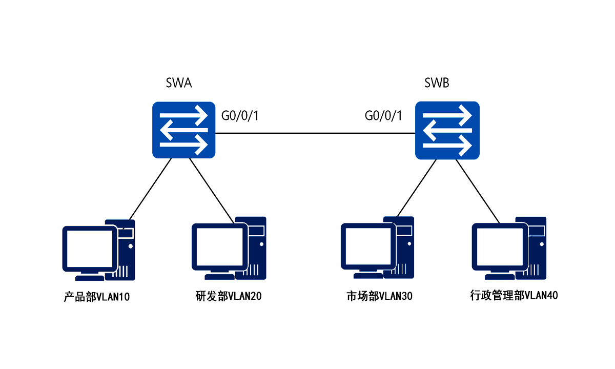 注意:Port VLAN一般适用在同一个交换机下的VLAN划分,若是跨交换机的VLAN划分则需使用802.1Q VLAN。