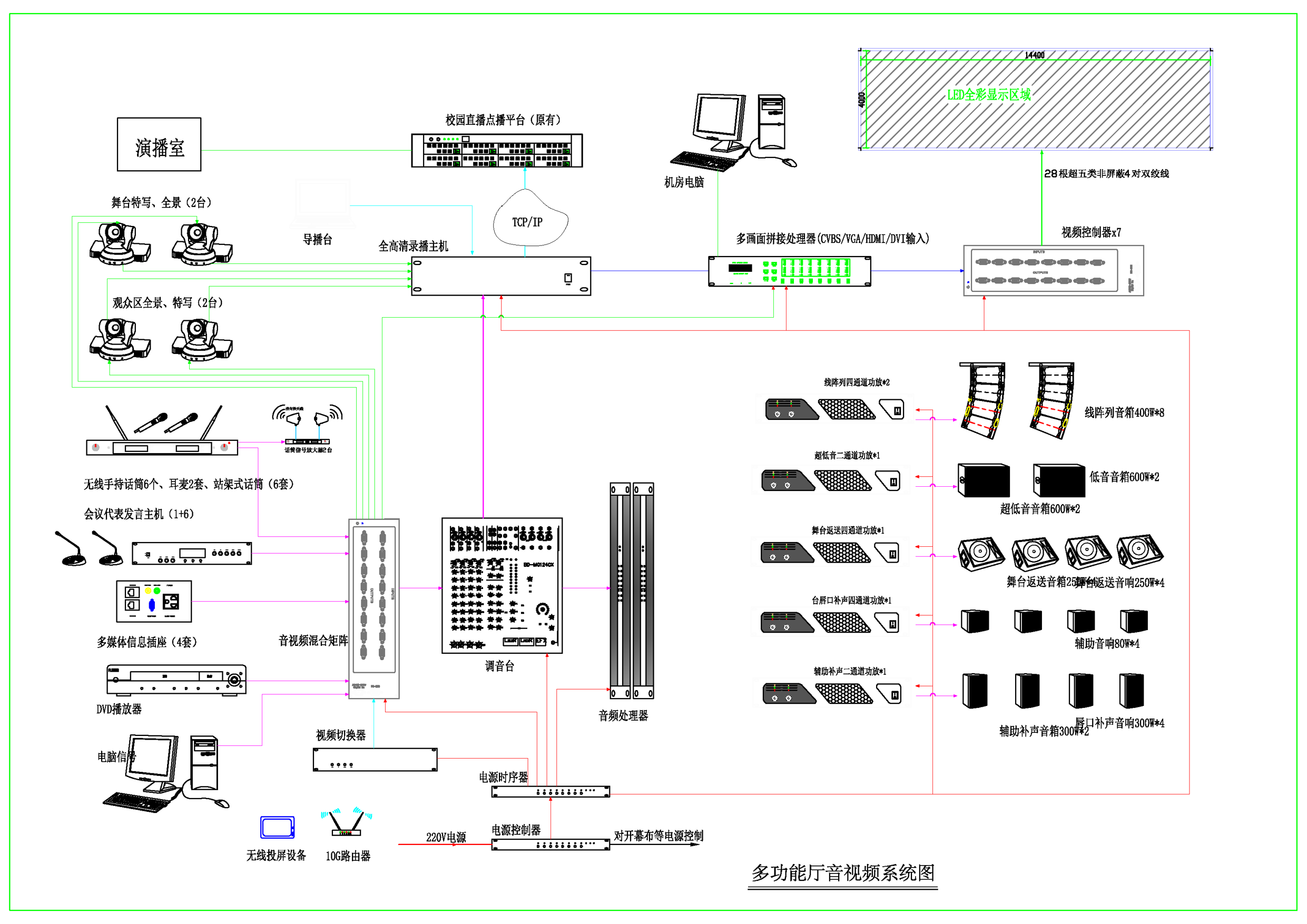 项目名称:中学多功能厅多媒体系统。