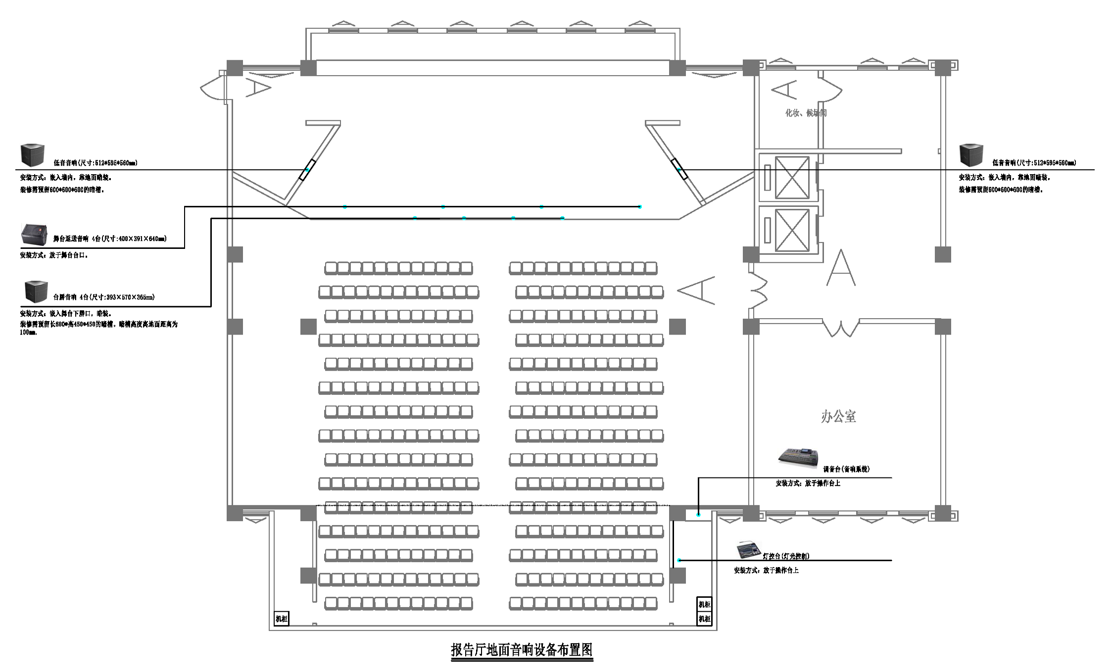 ②、报告厅地面音响设备布置图