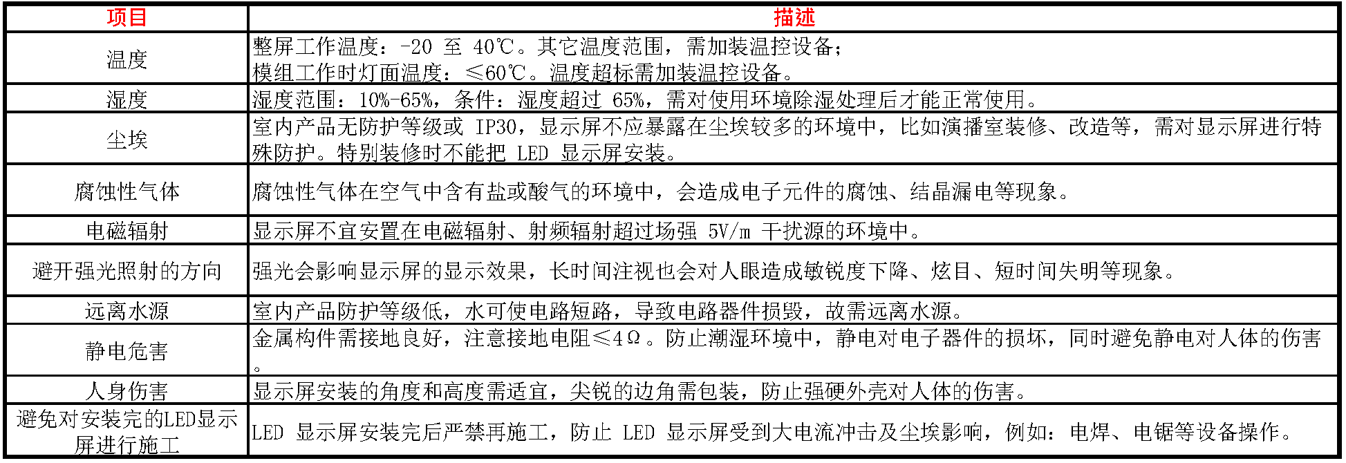⑨、室内 LED显示屏使用环境要求